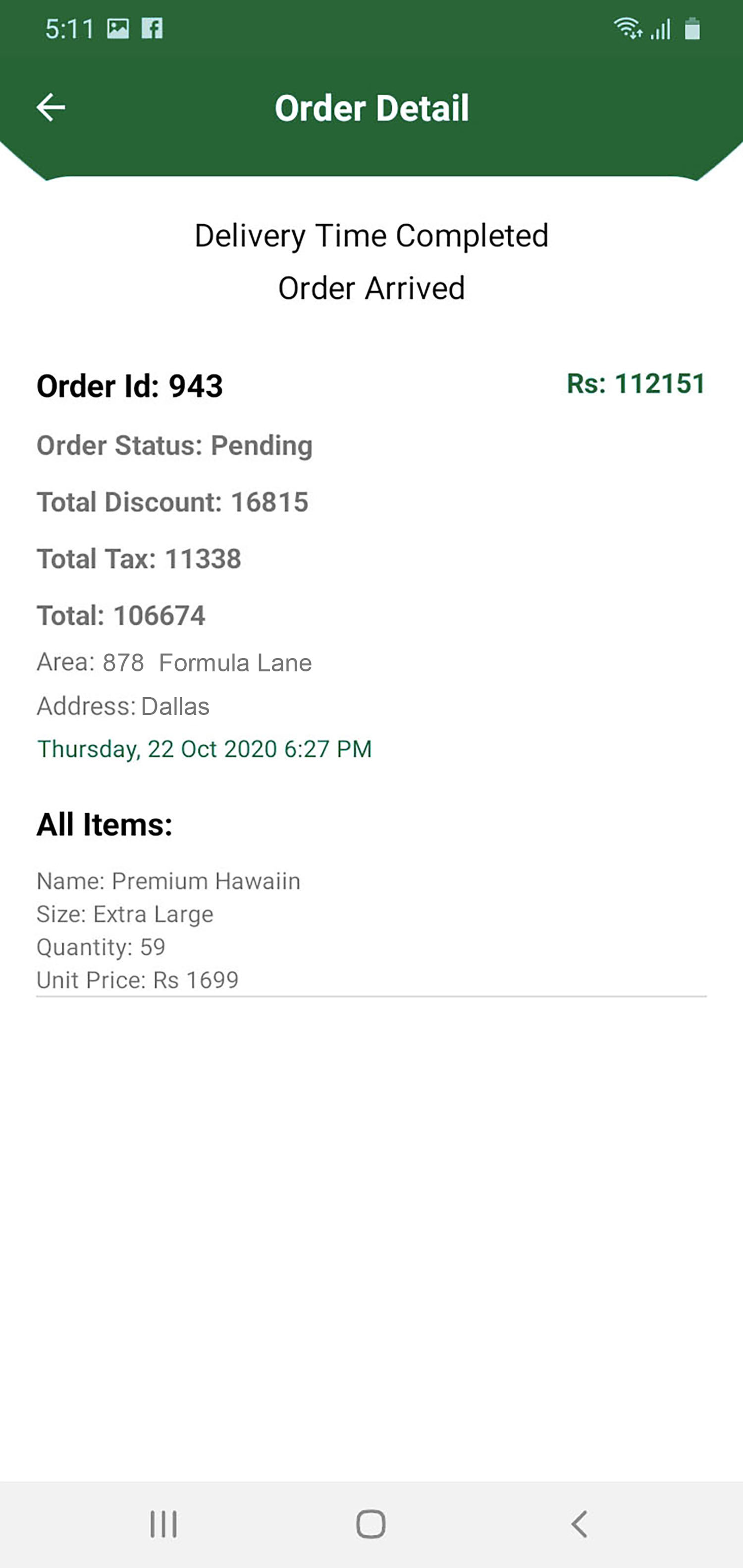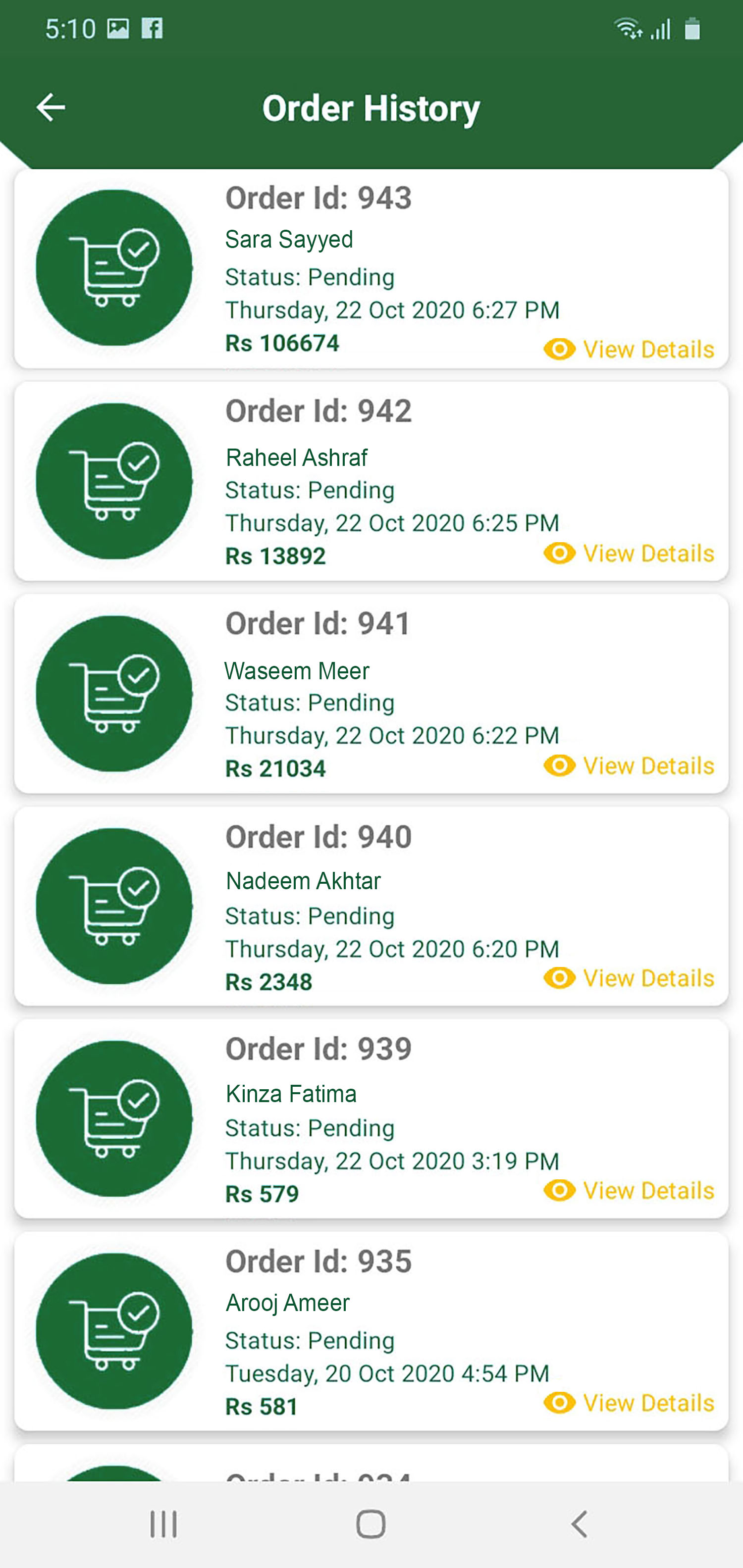 Details of all the orders placed by a customer can be seen and helps in consolidated record keeping. All previous order details can be viewed.